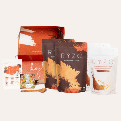 Our blend. enhanced with functional mushrooms and MCT. delivers calm energy that promotes focus. productivity. adrenal health. and … yes. happiness. Our ingredients have been studied for thousands of years and found to enhance brain function. boost immunity. and give balanced energy that keeps you shining all day long. All with less than half the caffeine of regular coffee.